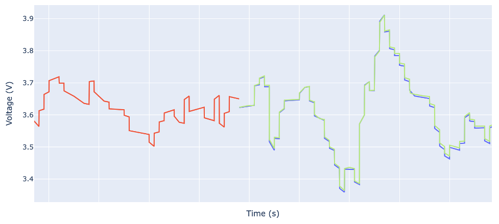 LBLM is highly accurate across a wide variety of cells. We have achieved an error rate of less than 1mV RMSE for next-voltage prediction across a test set of more than 2000 cells, spanning hundreds of unique combinations of the attributes in list of parameters above.