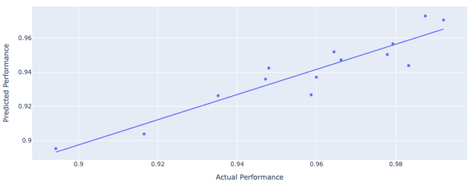 One of the most useful applications of LBLM is predicting the state-of-health of a battery from just its operating data: no lab checkup tests or reference-performance tests (RPTs) required. The figure below shows the accuracy in predicting state-of-health for a set of 14 cells performing 5 distinct drive cycles.